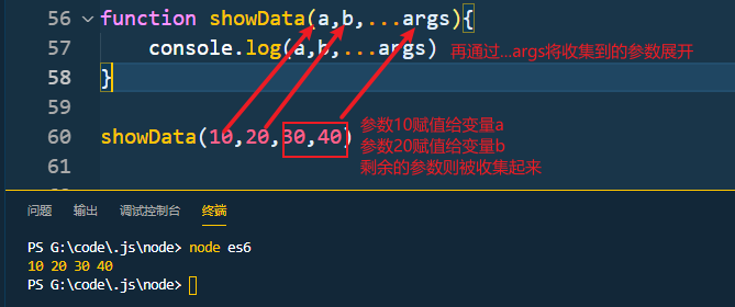 | let [json,arr,num,str] = [{name:'张三'},[1,2,3],15,'abcd'] console.log(json,arr,num,str)